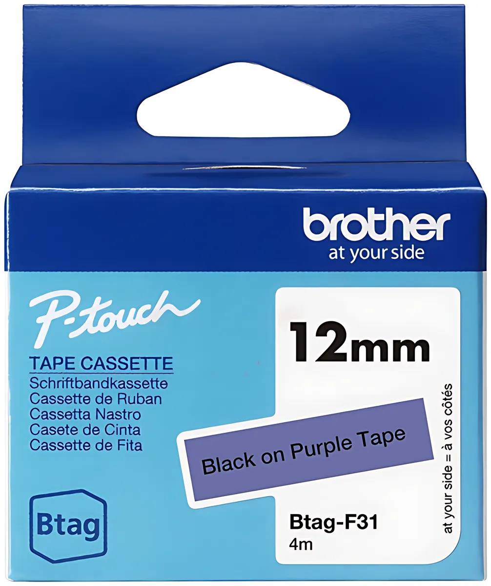 Brother BTAG-F31 DirectLabel-Etiketten schwarz auf violett 12mm x 4m - Effizient & Langlebig.