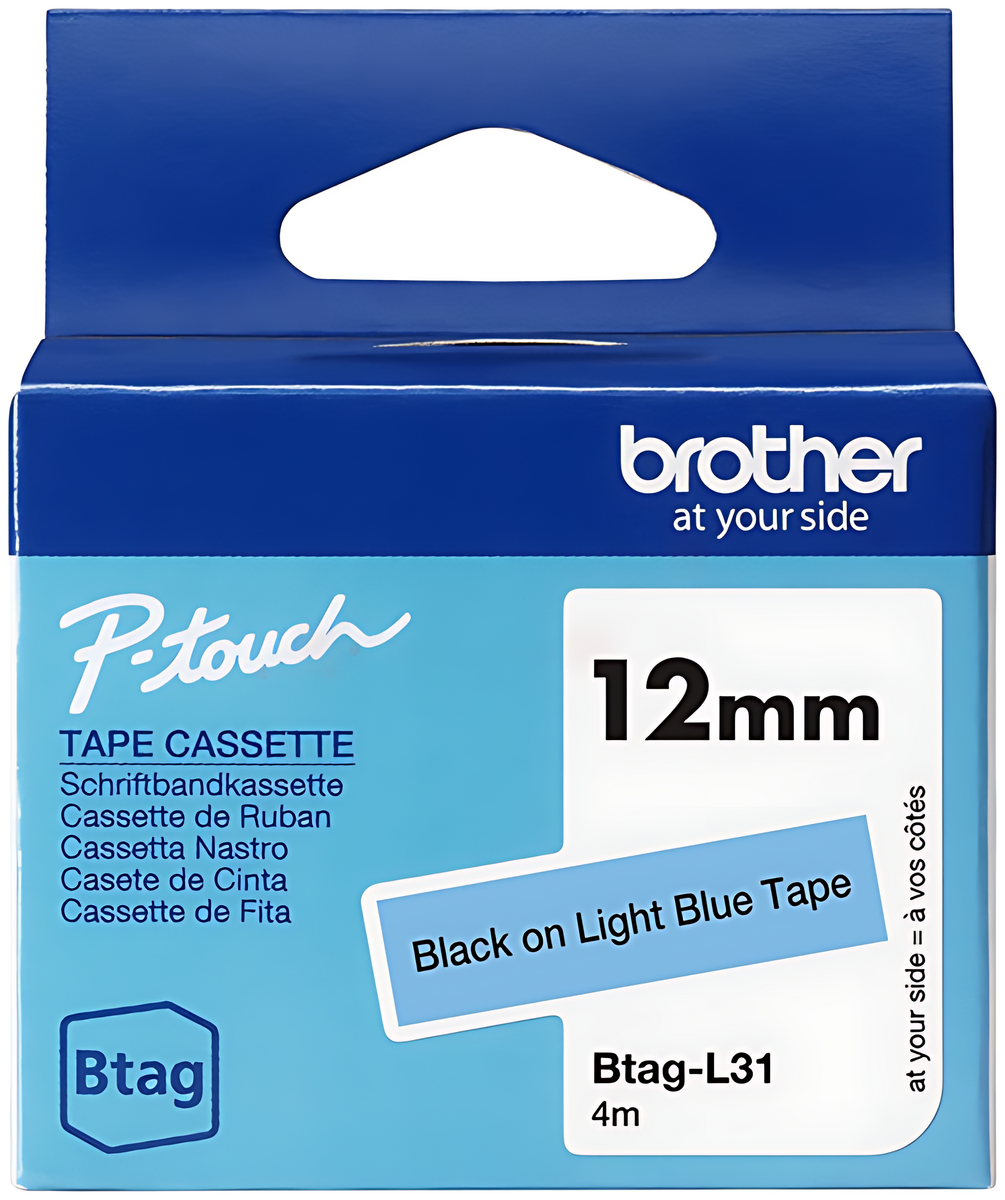 Brother BTAG-L31 DirectLabel-Etiketten schwarz auf blau hell 12mm x 4m - Effizient & Langlebig.