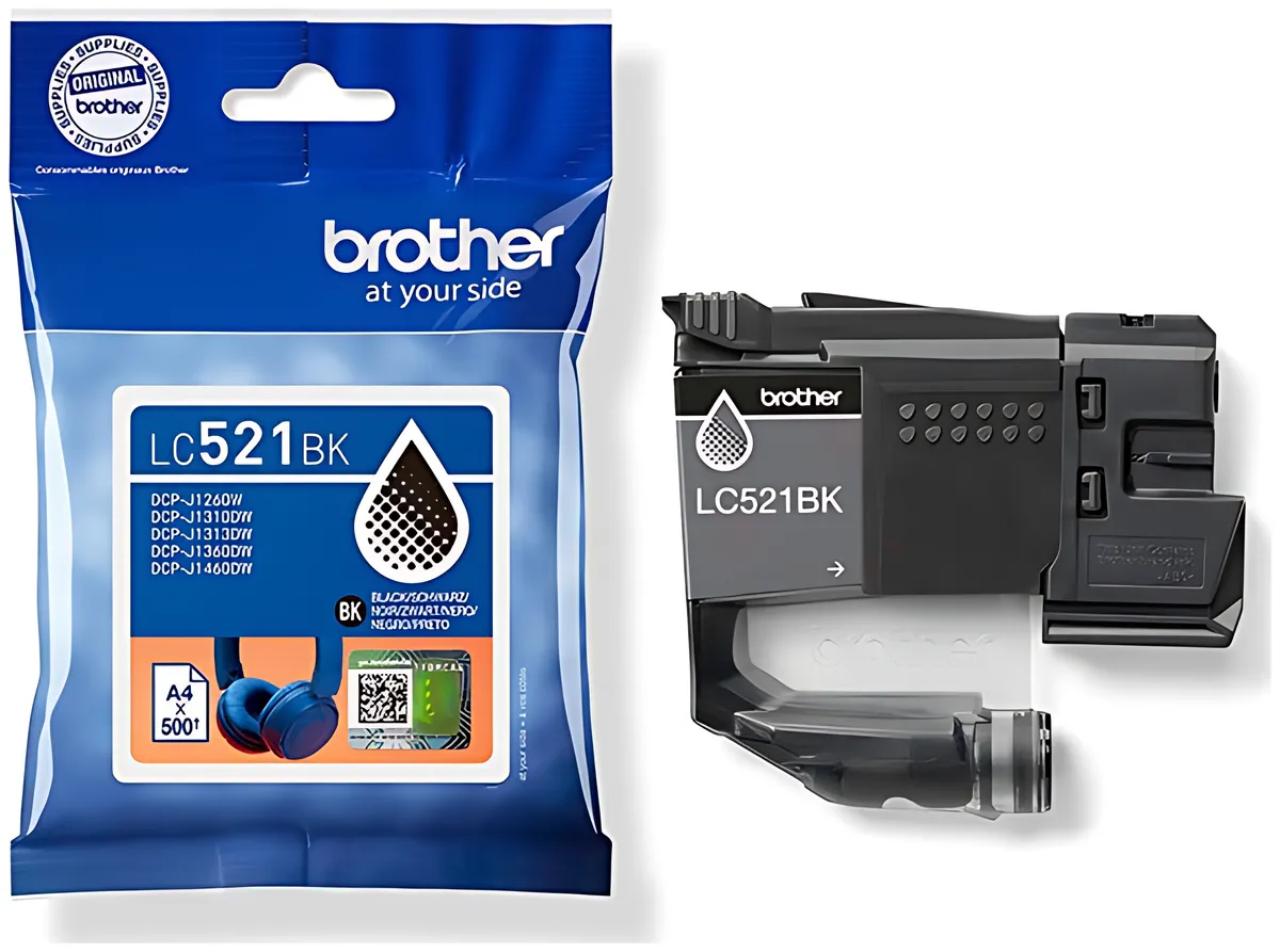 Die hochwertige Tintenpatrone LC-521BK, schwarz, 500 sorgt für langlebige und brillante Druckergebnisse. Ideal für gestochen scharfe Texte und lebendige Farben bei jedem Ausdruck.