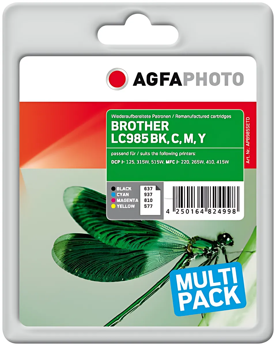 AgfaPhoto APB985SETD Tintenpatrone MultiPack Bk,C,M,Y 1x10ml + 3x6ml VE=4 (ersetzt Brother LC985VALBP)
