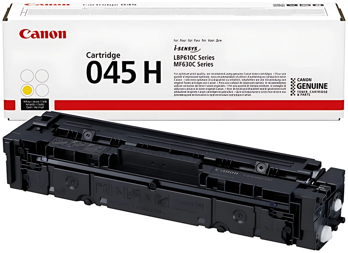 Die Herstellernummer Canon 045H / 1243C002 bezeichnet ein Verbrauchsmaterial des Typs Toner, das in bestimmte Drucker passt, darunter z. B. "Canon i-SENSYS LBP-610 Series", "Canon i-SENSYS LBP-611 Cn" und "Canon i-SENSYS LBP-612 Cdw". Die Komponente hat die Farbe gelb und eine erwartbare Reichweite von 2’200 Seiten.