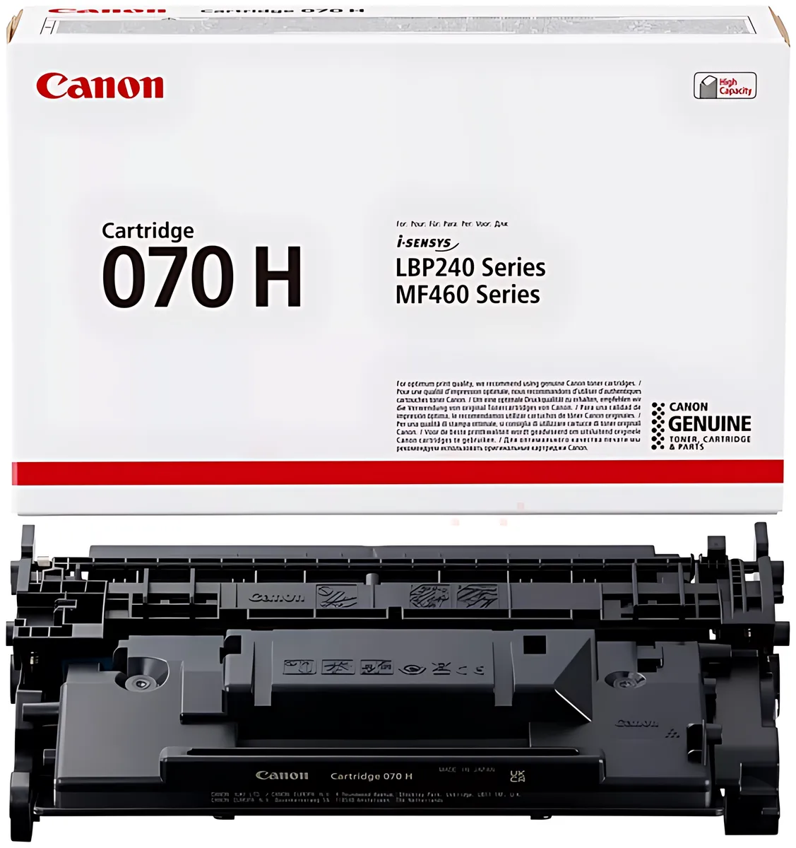 Die Herstellernummer Canon 070H / 5640C002 bezeichnet ein Verbrauchsmaterial des Typs Toner, das in bestimmte Drucker passt, darunter z. B. "Canon i-SENSYS LBP-240 Series", "Canon i-SENSYS LBP-243 dw" und "Canon i-SENSYS LBP-246 dw". Die Komponente hat die Farbe schwarz und eine erwartbare Reichweite von 10’200 Seiten.