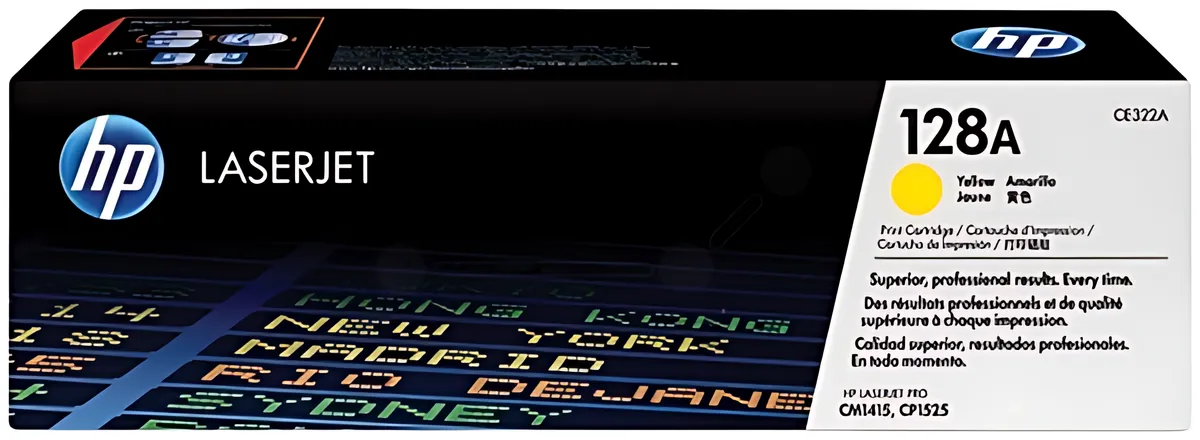 Der gelbe Farbton des CE322A Toners wurde speziell entwickelt, um lebendige und präzise Gelbtöne zu erzeugen. In Kombination mit den anderen Farben der 128A Serie (HP 128A / CE320A schwarz, HP 128A / CE321A cyan und HP 128A / CE323A magenta) entstehen brillante Farbdrucke mit hoher Farbgenauigkeit.