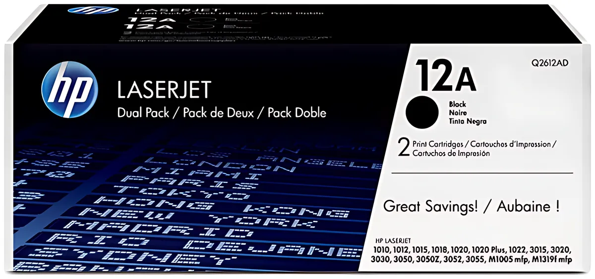 Der HP 12AD (Modellnummer Q2612AD) ist ein Original-Toner-Doppelpack von Hewlett-Packard, der zwei schwarze Tonerkartuschen in einer Verpackungseinheit enthält. Diese Tonerkartuschen basieren auf der bewährten HP 12A-Technologie und bieten eine kostengünstige Lösung für Nutzer mit höherem Druckvolumen.