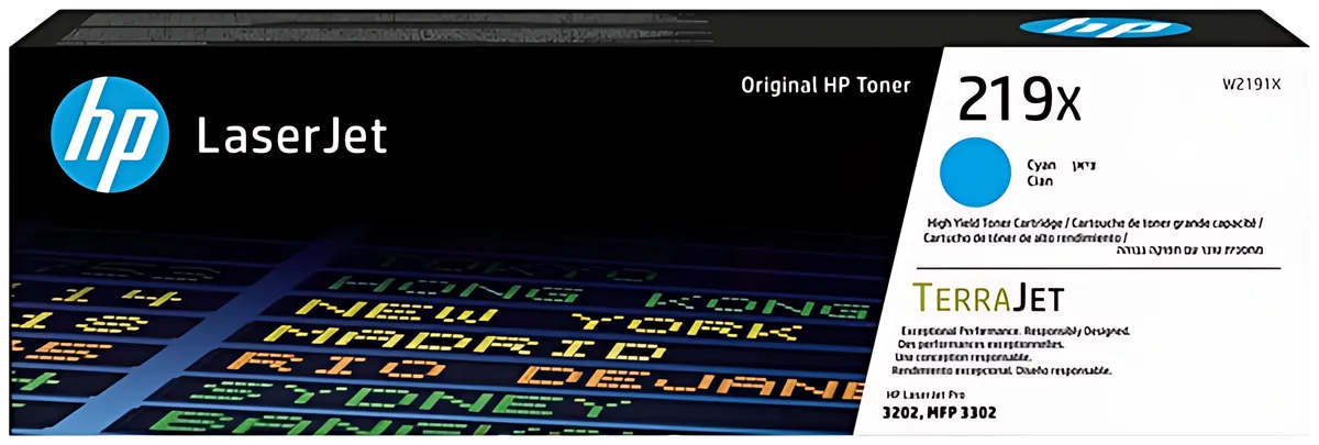 Der HP 219X / W2191X Toner cyan trägt die Herstellerartikelnummer W2191X und ist unter der GTIN-13 Nummer 0195161016295 registriert. Diese High-Capacity Variante gehört zur 219X Serie und bietet gegenüber der Standard 219A Version eine deutlich höhere Seitenleistung.