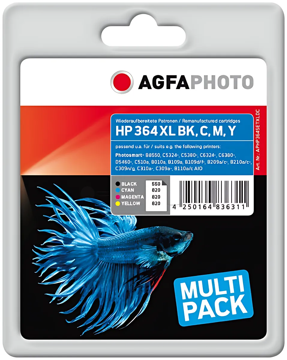 AgfaPhoto APHP364SETXLDC Tintenpatrone MultiPack Bk,C,M,Y 11ml + 3x5ml VE=4 (ersetzt HP 364XL)