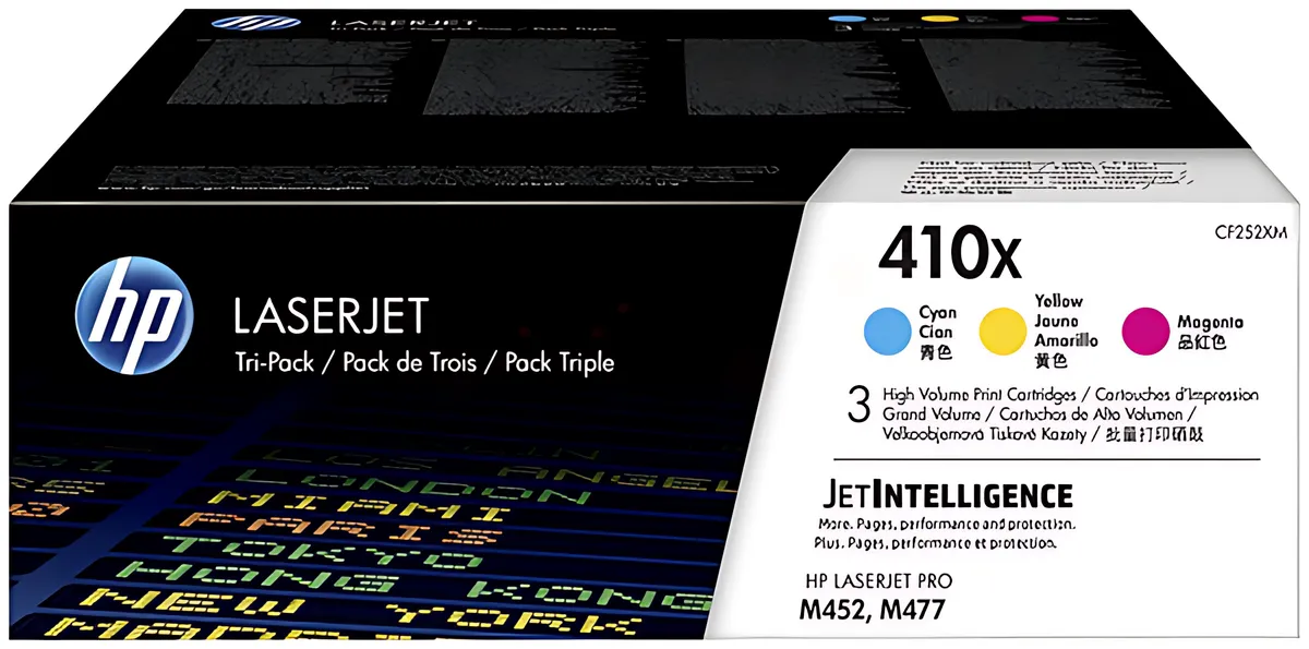 Der HP CF252XM ist ein spezieller Dreierpack von Farbtonerkartuschen, der die Modellnummern CF411X (Cyan), CF413X (Magenta) und CF412X (Gelb) in einem kostenoptimierten Bundle vereint. Diese High-Capacity Tonerkartuschen sind ausschliesslich für HP Color LaserJet Pro Drucker der M450 und M470 Serie entwickelt worden.