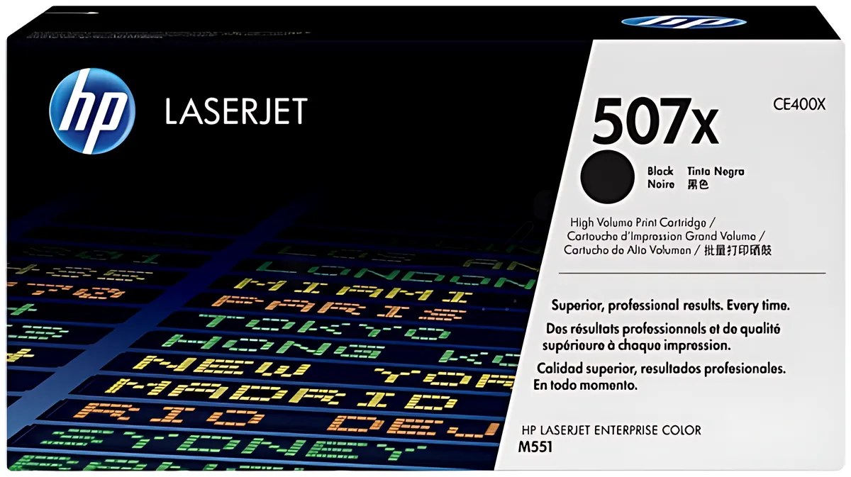 Für vollständige Farbdrucklösungen können Sie den HP 507X schwarz mit den entsprechenden Farbtoners der 507A Serie kombinieren: