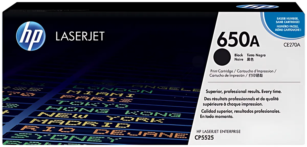 Die HP 650A Tonerserie umfasst vier verschiedene Farbvarianten und ist speziell für die HP Color LaserJet Enterprise CP 5500, CP 5520 und CP 5525 Serie sowie die M 750 Multifunktionsgeräte entwickelt worden. Diese Toner bieten eine aussergewöhnliche Seitenreichweite von bis zu 15.000 Seiten für Farbtoner und 13.500 Seiten für schwarzen Toner.