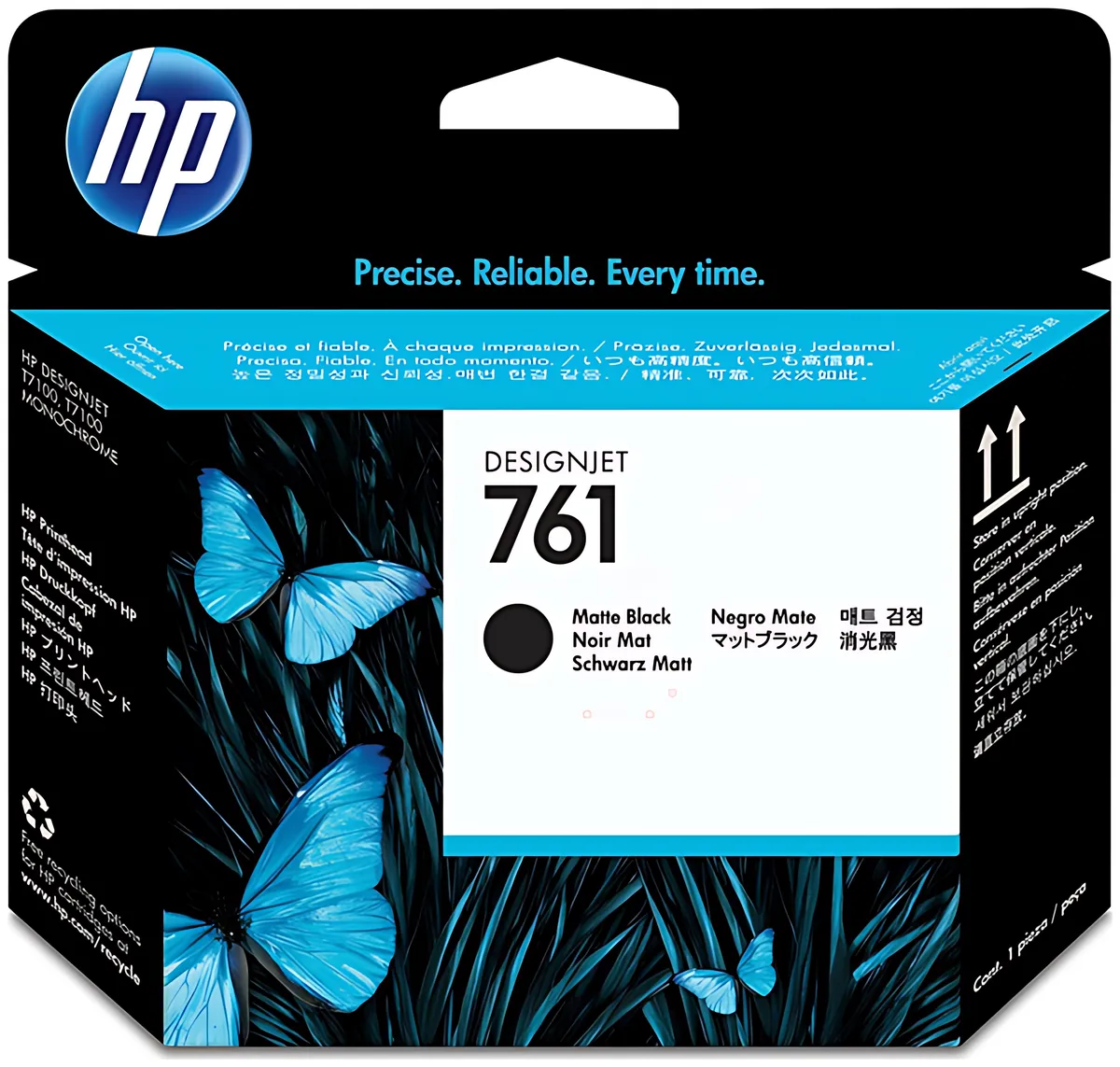 HP empfiehlt ausdrücklich die Verwendung originaler HP 761 Tintenpatronen mit dem CH648A Druckkopf. Drittanbieter-Tinten können die Druckqualität beeinträchtigen, Verstopfungen verursachen und die Garantie Ihres Plotters erlöschen lassen. Für optimale Ergebnisse verwenden Sie die HP 761 / CM991A Tintenpatrone schwarz matt.