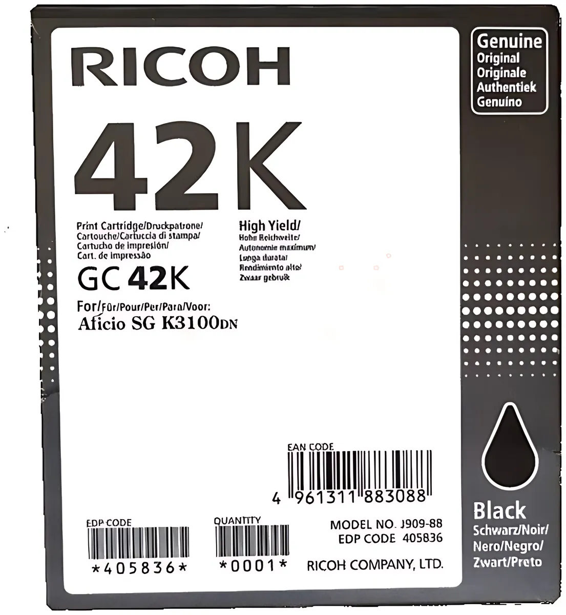 Ricoh 405836/GC-42K Gelkartusche schwarz, 10.000 Seiten ISO/IEC 19752 - Hohe Kapazität für gestochen scharfe Ausdrucke.
