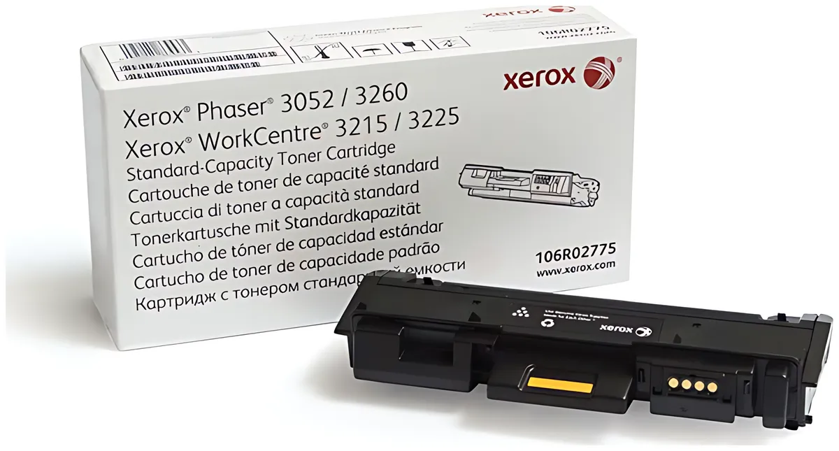 Die Herstellernummer Xerox 106R02775 bezeichnet ein Verbrauchsmaterial des Typs Toner, das in bestimmte Drucker passt, darunter z. B. "Xerox Phaser 3052", "Xerox Phaser 3252" und "Xerox Phaser 3260". Die Komponente hat die Farbe schwarz und eine erwartbare Reichweite von 1’500 Seiten.